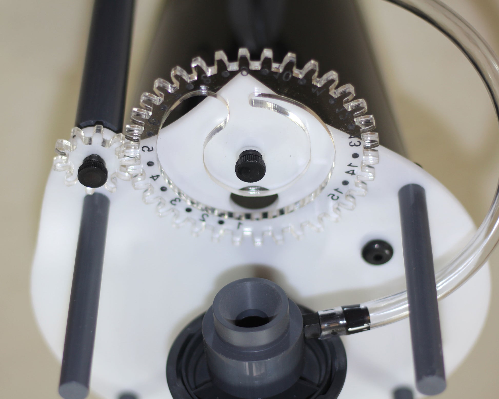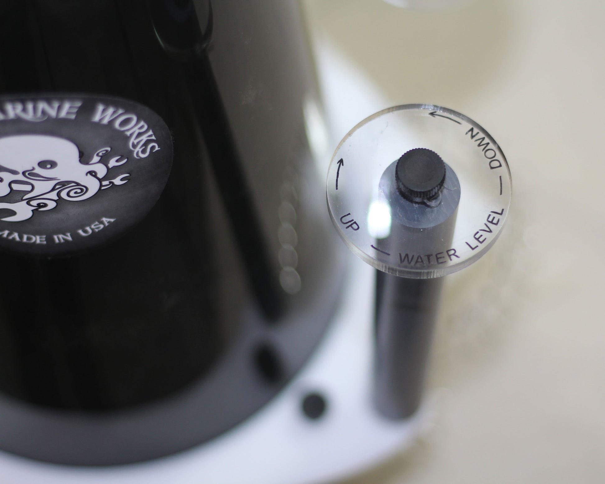 The Pegleg 180 features a precision machined gate valve assembly that requires no piping to operate. It is geared in such a way to make micro adjustments not only numerically quantifiable but 100% repeatable. Since there is no piping to worry about we are able to drop the effluent from the skimmer directly in the path of the intake of the pump. By doing this we are using the same passive recirculation principles that we introduced in our Spyglass Reactors to recirculate the water without adding complex plumbing or requiring a separate feed pump.