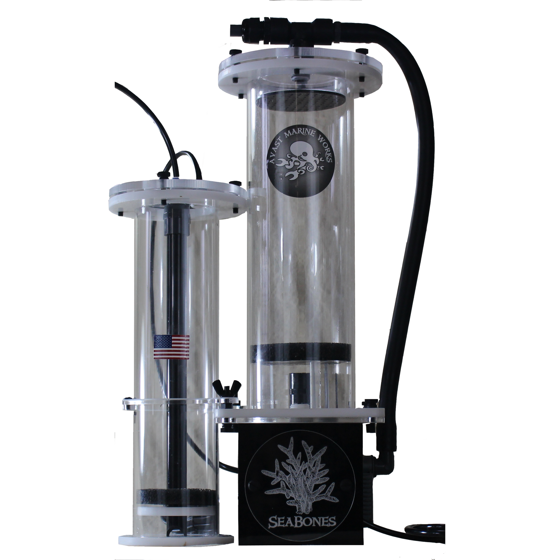 Balanced replenishment of calcium and alkalinity is among the most important water quality corrections required for a thriving reef aquarium. The SeaBones calcium reactor achieves this by liberating calcium and bicarbonate ions from aragonite media, typically old coral skeletons, using CO2 gas. This process yields equal amounts of calcium and alkalinity added to your aquarium water with no by-product ions, unlike with two-part A/B solutions, which can throw off your system's ionic balance.