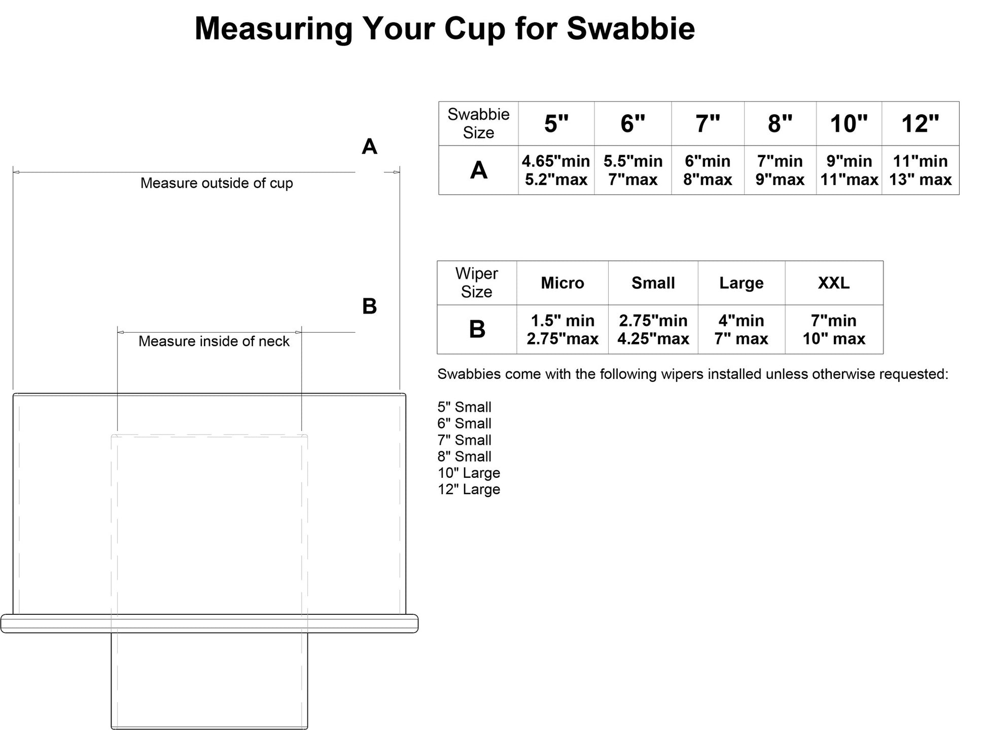 Note regarding wiper reach or length: If your skimmer's neck is too wide or tall for the standard wiper, please just let us know and we will substitute the next larger wiper size with your Swabbie at no additional charge.